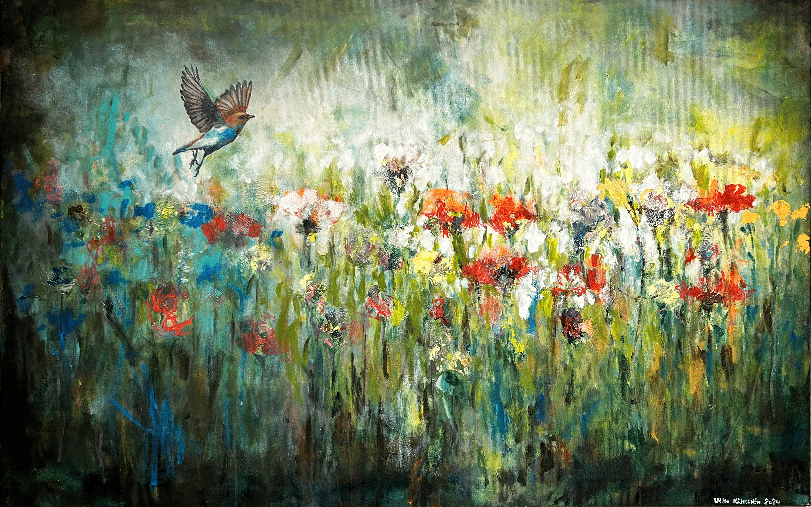 Vihreä väri herättää toivoa. Sen sanotaan olevan ajatusten ja järjen väri. Taidemaalari ja väriteoreetikko Wassily Kandinsky´n mukaan vihreä on myös äärimmäisen tasapainon väri. Tätä tasapainoa tarvitsimme keväällä, kun maailmamme mullistui täysin. Koronapandemian saapuessa Suomeen oma kalenterini tyhjeni kahdessa päivässä. Samaan aikaan maalausteni väri muuttui hetkessä vihreäksi. Sattumaako – vai sisäinen tunne siitä, että väri voi antaa voimaa ja toivoa.